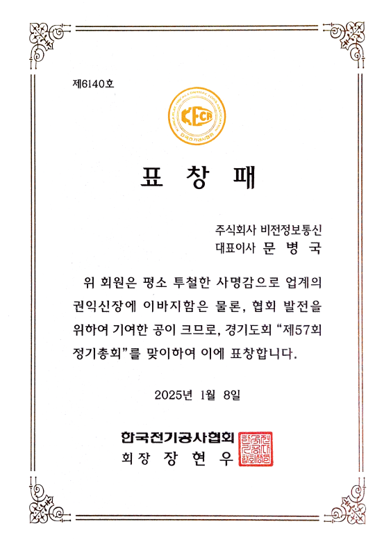 한국정보통신공사협회 표창장